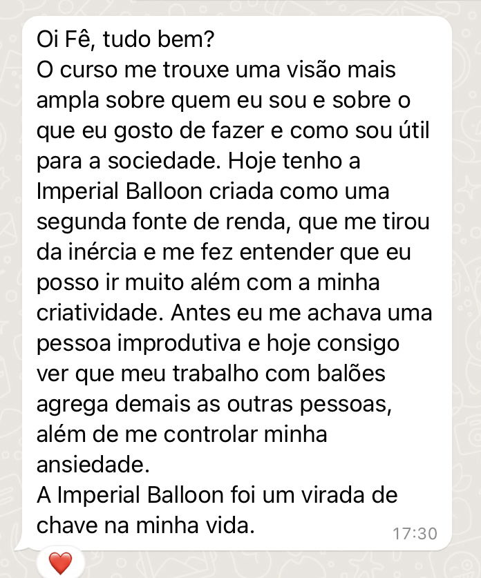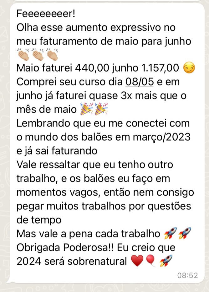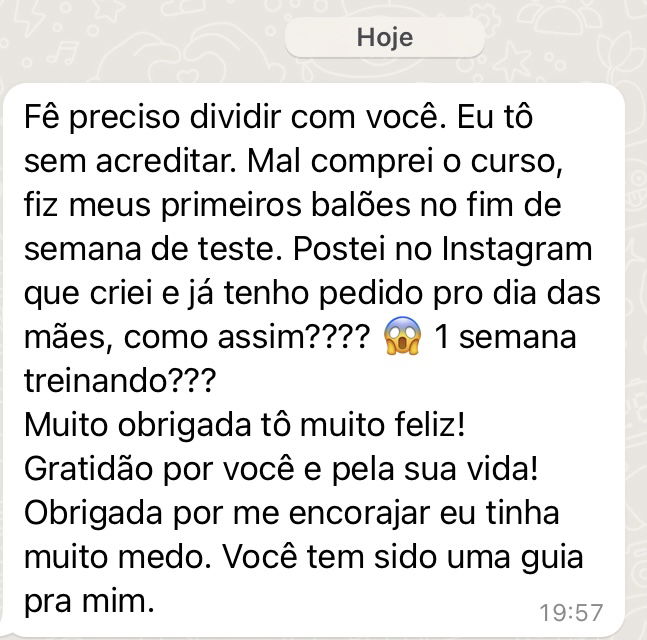 Mas acima de tudo, sou uma mulher como você: que começou do zero, acreditou em um sonho e transformou os balões em fonte de renda, autoestima e liberdade.
